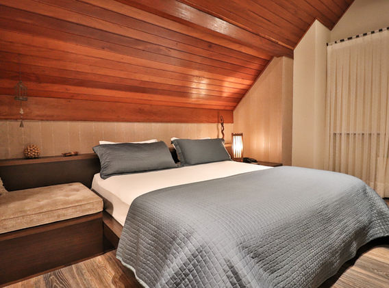 Localizada no segundo andar esta Suíte possui Hidromassagem e um amplo espaço para casal que optam por tranquilidade e ambiente romântico.